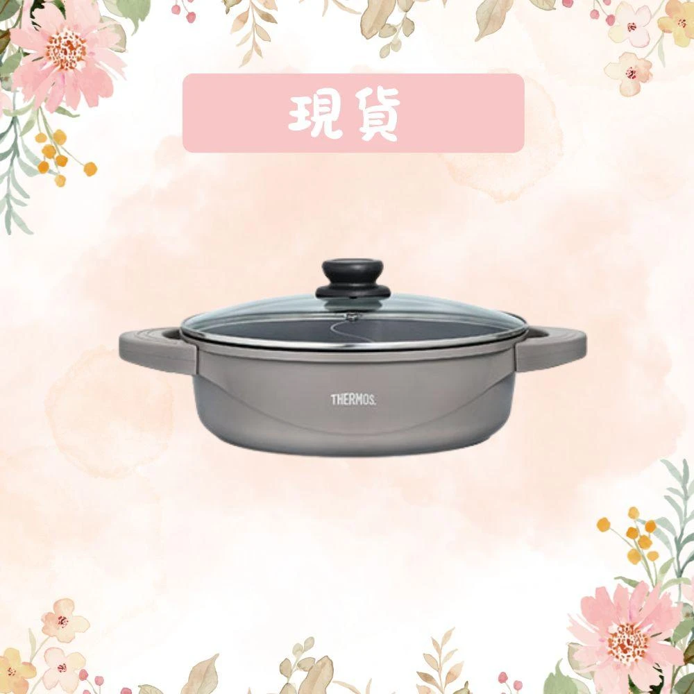 THERMOS 膳魔師巧易不沾鍋雙耳附蓋壓鑄鴛鴦火鍋 28cm 霧灰綠TFP-P28-DBR|適用多種爐具