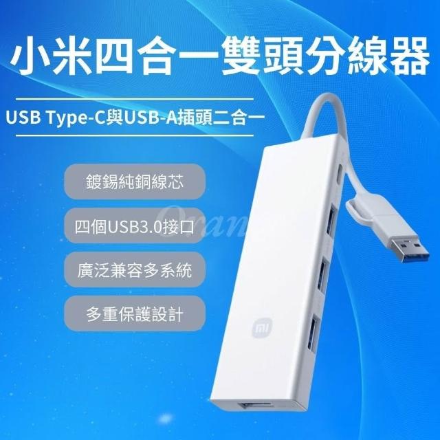 小米 四合一 雙頭分線器 4口USB 雙接頭 集線器 轉接器 高速傳輸 插座 擴充 Type-C USB3.0 小米有品