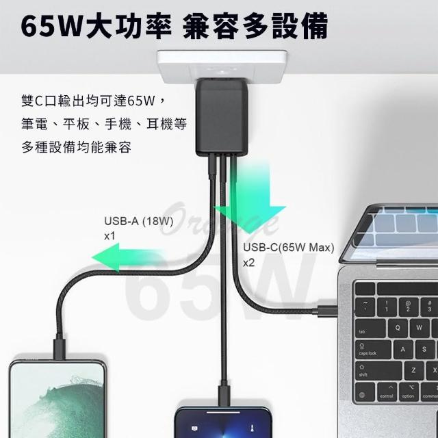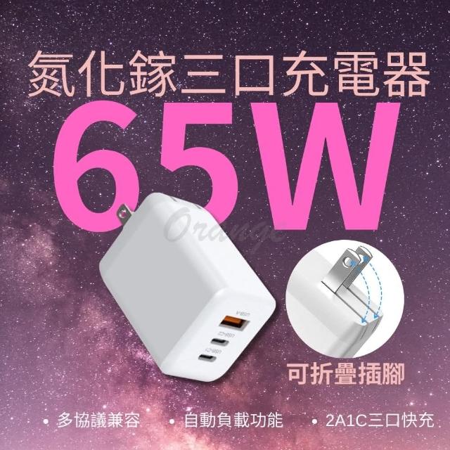 GaN 氮化鎵 充電器 65W 三口 快充 閃充 PD QC Type-C 旅充頭 充電頭 豆腐頭 平板 手機 小米有品