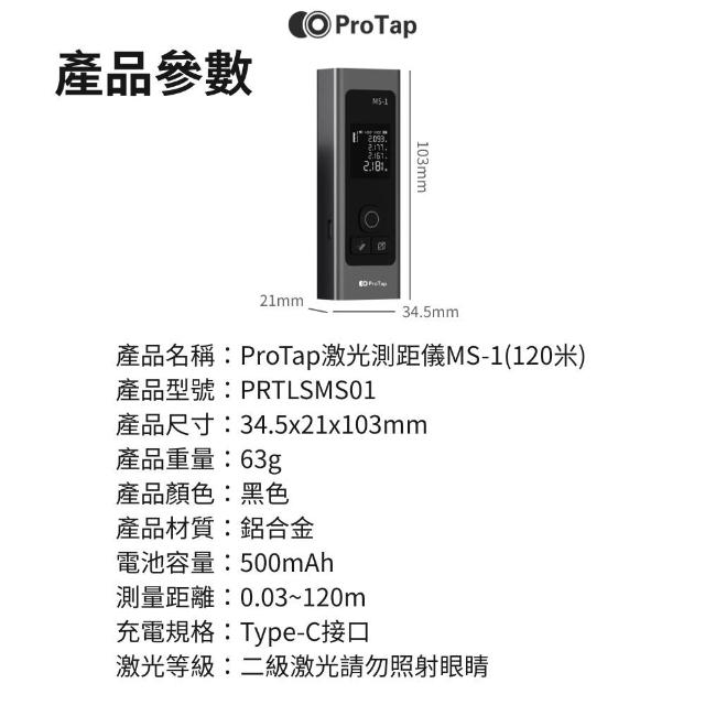 ProTap浦拓 激光測距儀MS-1 120米 雷射 測距儀 測量儀 紅外線 測量器 水平儀 雷射尺 電子尺 量距機 杜克