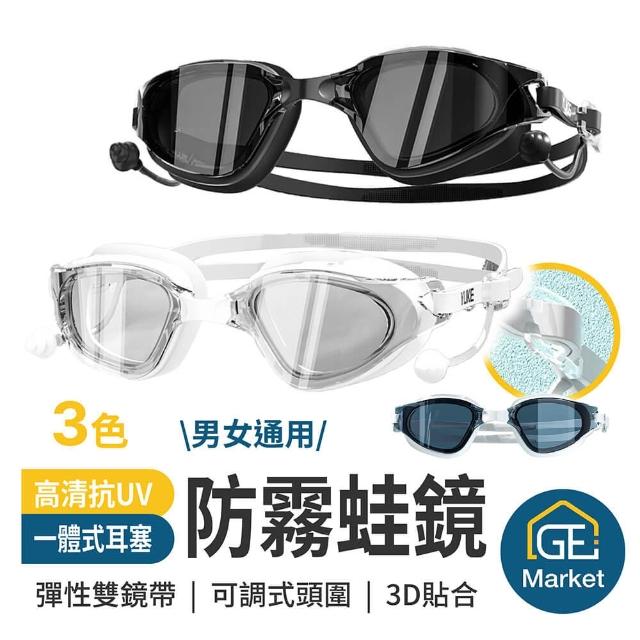 霧蛙鏡 一體成型 含耳塞 抗UV防水防霧 男女通用【GE嚴選成人泳鏡 游泳眼鏡 蛙鏡 專業蛙鏡 防霧泳鏡 游泳鏡