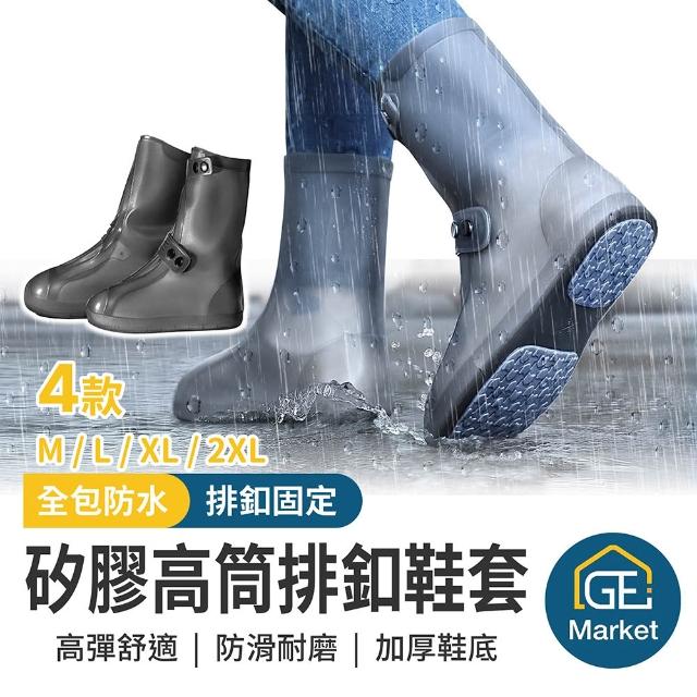 矽膠高筒排釦鞋套 超好穿脫 加厚鞋底【GE嚴選】騎車防水鞋套 高筒防水雨鞋套 防水鞋套 防雨鞋套 雨鞋套 雨鞋 鞋套