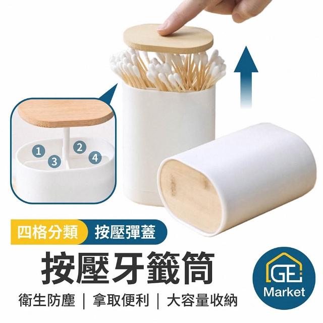 按壓牙籤筒【GE嚴選】棉花棒收納盒 自動彈蓋 四格分類 牙線棒收納 防塵置物盒 桌面收納罐 北歐風 牙籤罐 棉花棒筒