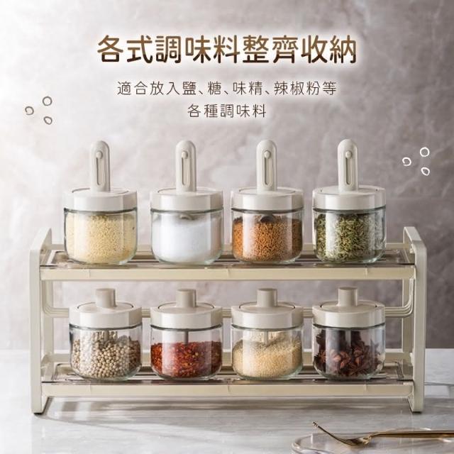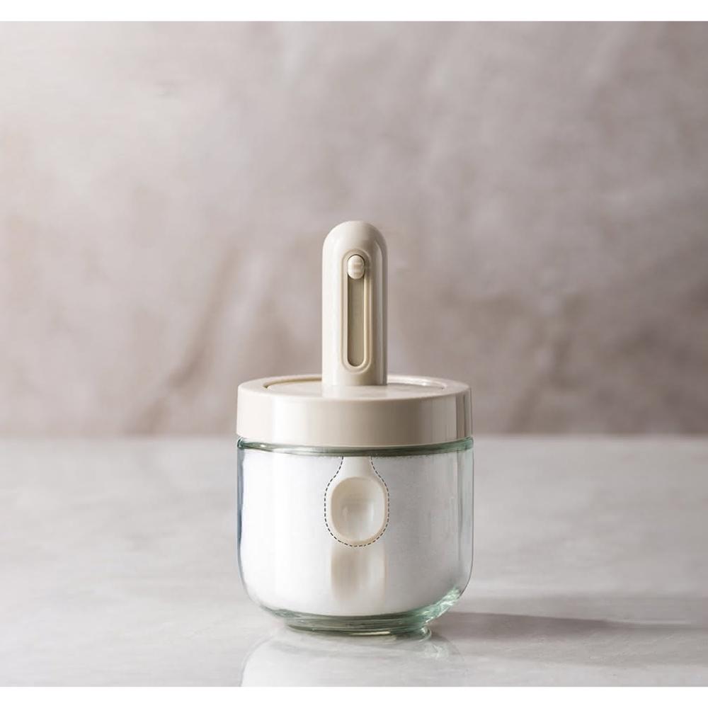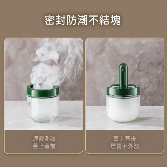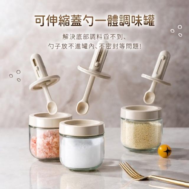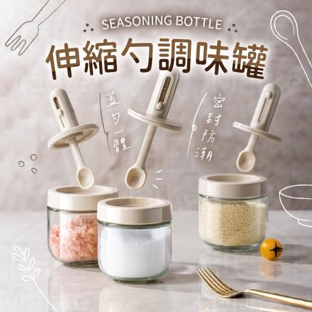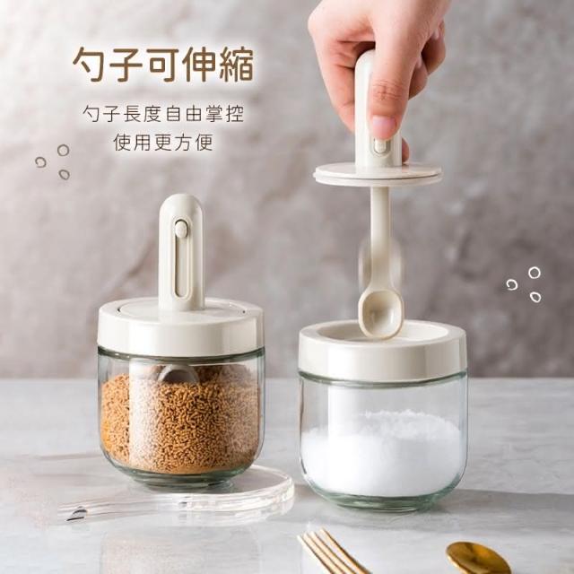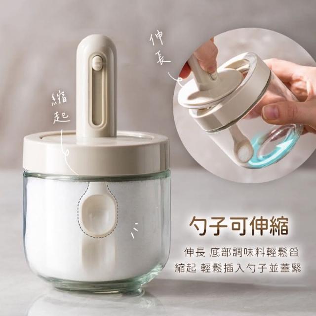 定量調味罐(可伸縮勺調味瓶 伸縮勺調味瓶 伸縮勺調味罐 調味瓶 玻璃調味罐 勺蓋一體式調味罐 防潮 密封)