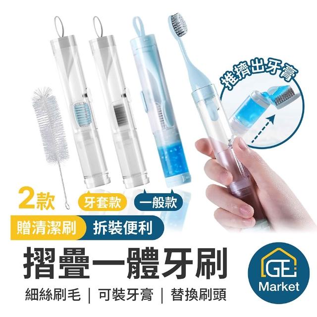 摺疊一體牙刷 牙套可用 可裝牙膏【GE嚴選】旅行牙刷 便攜式牙刷 牙刷 折疊牙刷組 牙刷旅行組 民宿牙刷 軟毛牙刷
