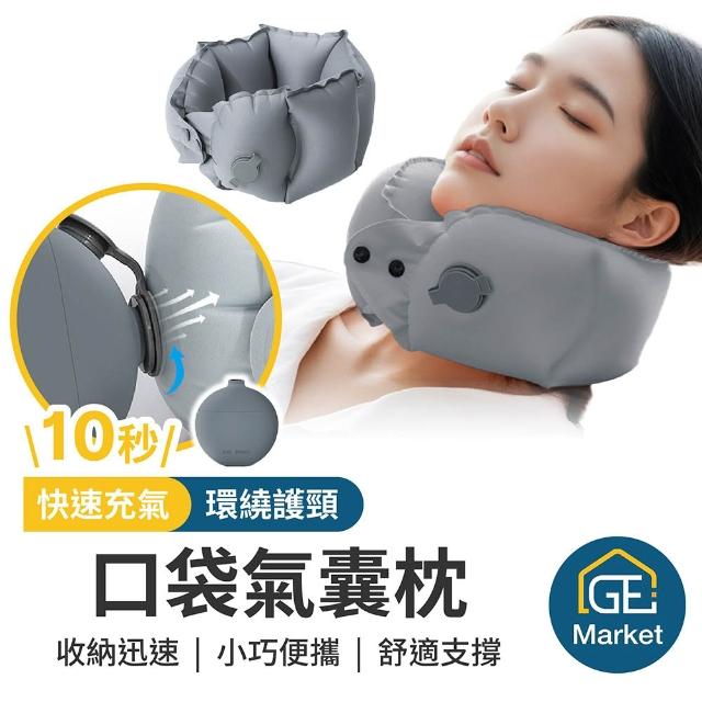 袋氣囊枕 10秒快速充氣 可收納旅行頸枕【GE嚴選護頸枕 午睡枕 午休枕 飛機枕 U型枕 充氣頸枕 旅行頸枕