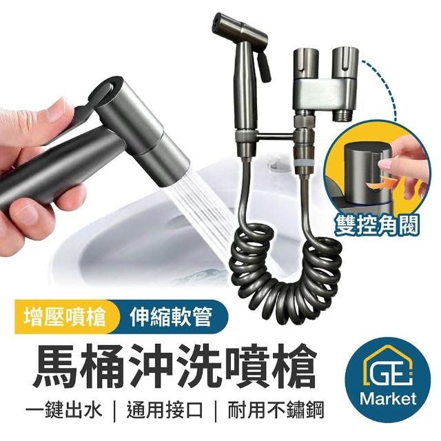 馬桶沖洗噴槍 不鏽鋼加壓噴槍 伸縮軟管 全套組【GE嚴選】馬桶噴槍 免治沖洗器 衛浴噴槍 婦洗器 洗馬桶 浴室清潔工具