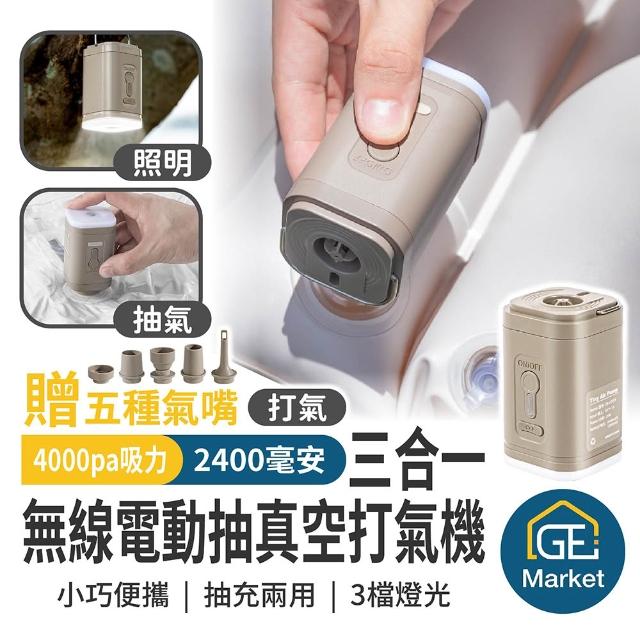 三合一無線電動抽真空打氣機 五種氣嘴 2400mAh【GE嚴選】無線抽氣機 電動充氣機 壓縮袋抽氣機 游泳圈打氣機