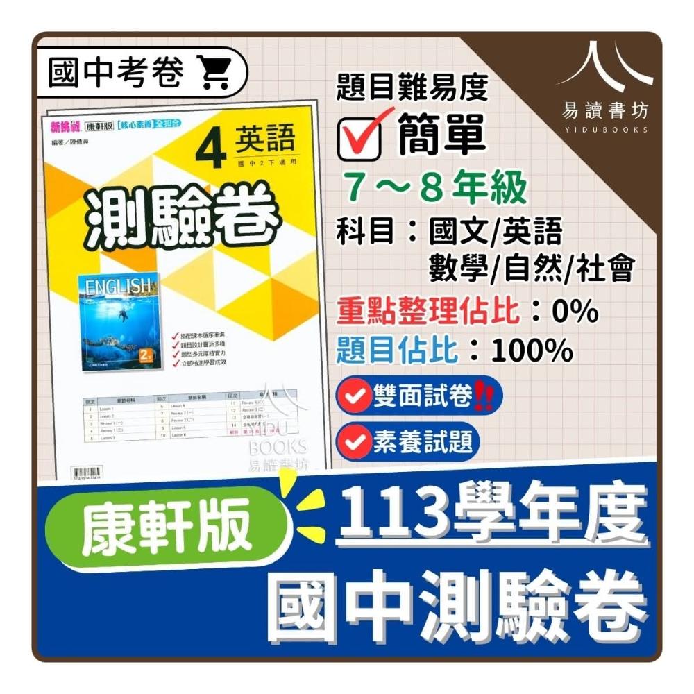 康軒〔113下國中測驗卷〕康軒國中-新挑戰測驗卷(國文/英語/數學/自然/社會)
