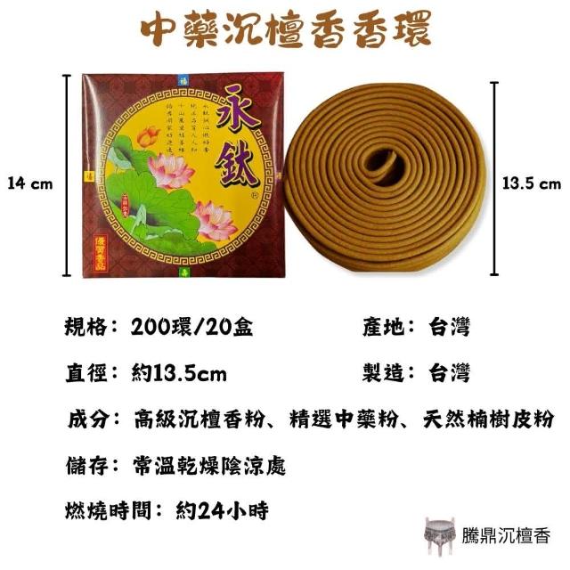 騰鼎沉檀香 24小時 中藥沉檀香香環 200環/20盒組 中藥香環 (香環 環香 小盤香 沉香 檀香 天然 漢方 中藥材 招財 淨化 除障 開運)