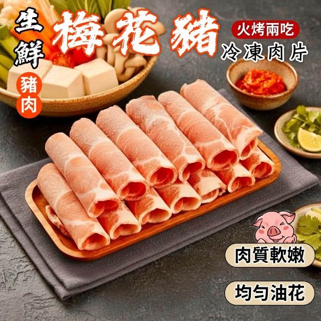 小嚼士霜降梅花豬火鍋肉片 1KG(豬肉 燒烤肉片 梅花肉 梅花豬肉 豬肉片 豬火鍋肉片 冷凍肉品 豬肉薄片)
