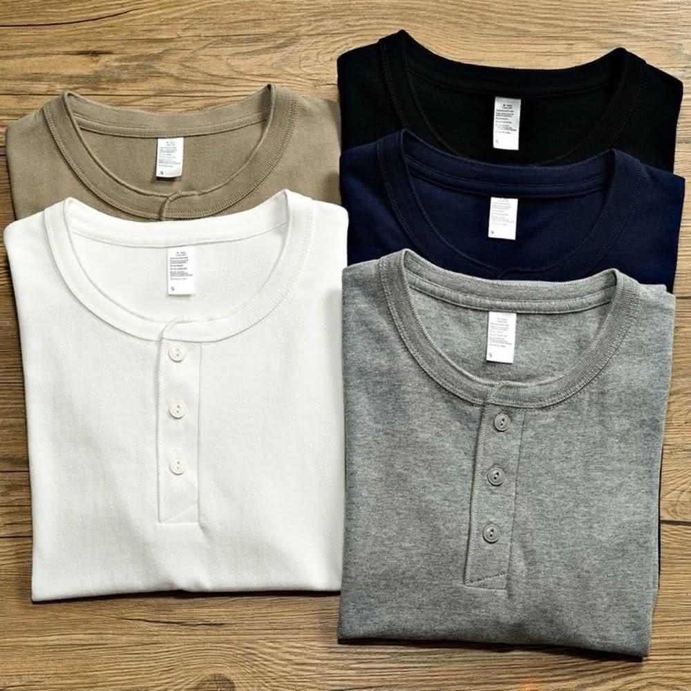 Folklore Classic 五色 重磅純美國棉短袖亨利領T恤(Henley Neck)