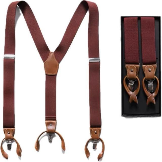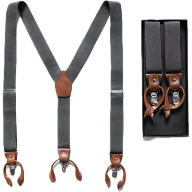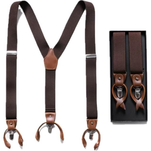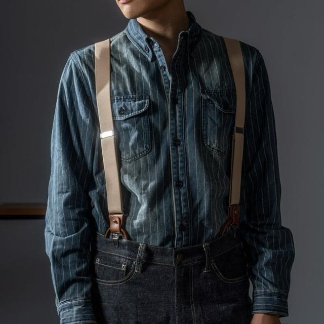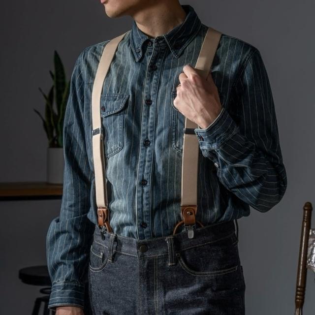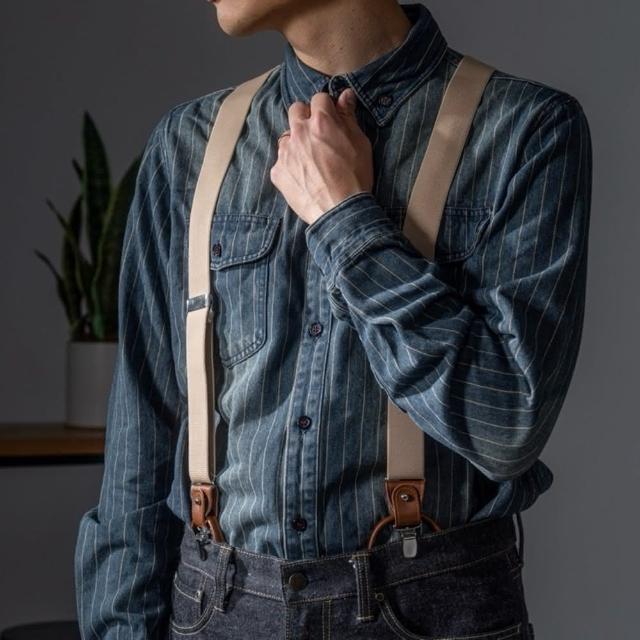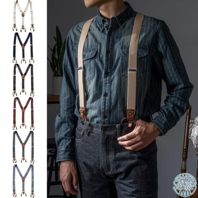 Folklore Classic 六色 復古彈力織帶拼接頭層真皮吊帶(夾扣通用)
