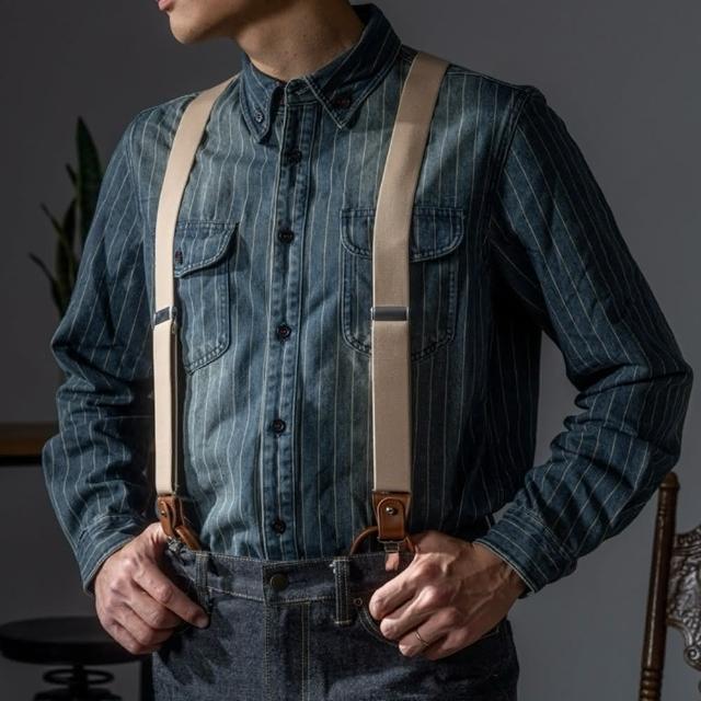 Folklore Classic 六色 復古彈力織帶拼接頭層真皮吊帶(夾扣通用)