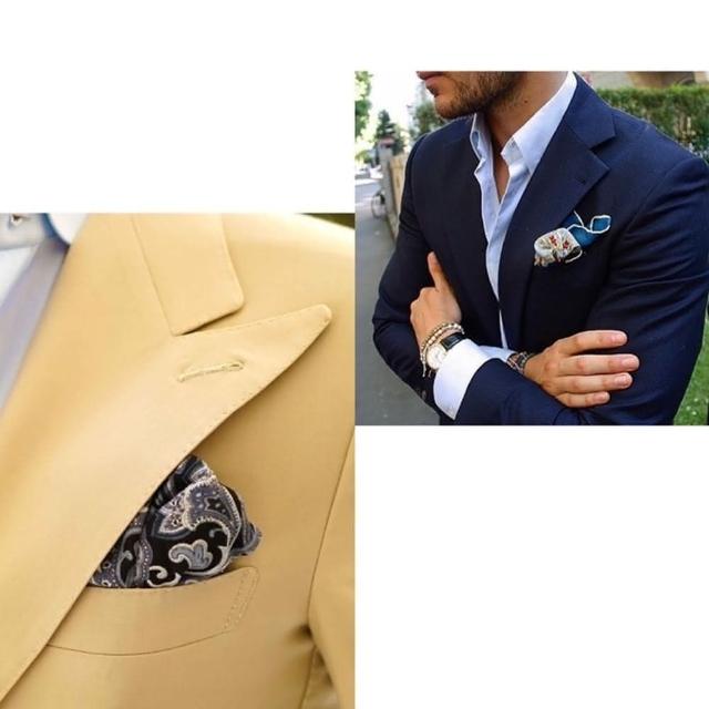 Folklore Classic 手工捲邊真桑蠶絲緞面花色口袋巾(方巾 絲巾 真絲 Square Pocket)