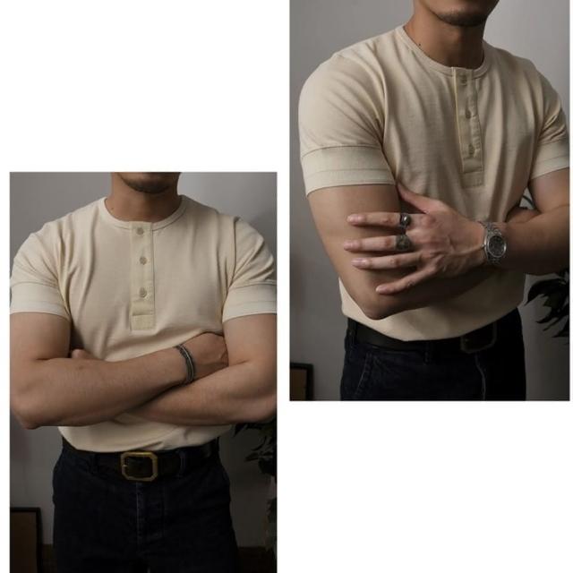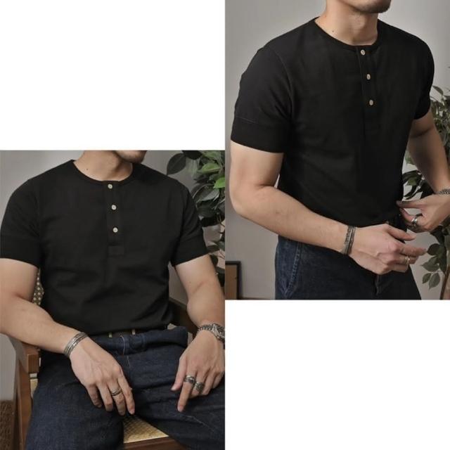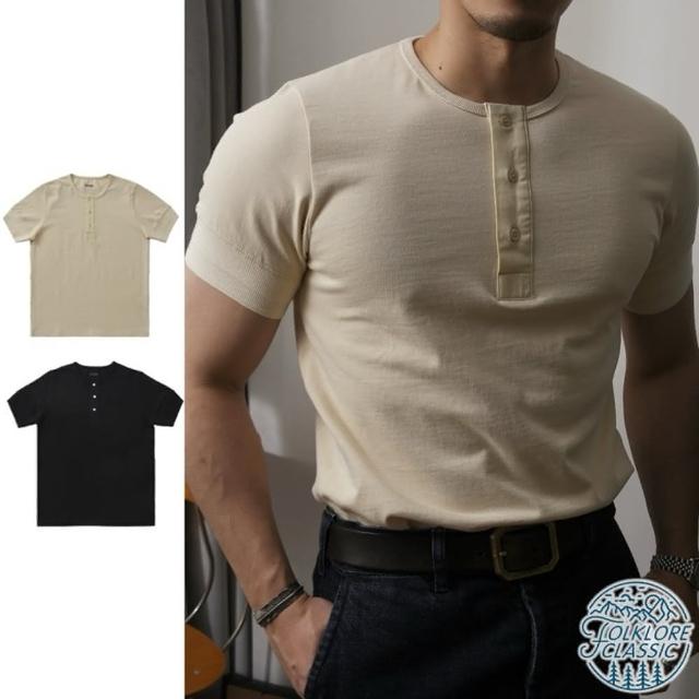 Folklore Classic 雙色 重磅300g復古水洗純棉五分袖針織羅紋亨利領T恤(Henley Neck)