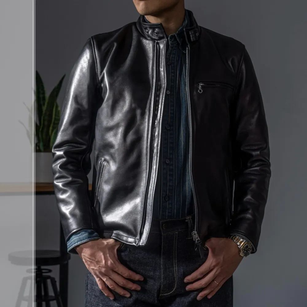 現貨 Folklore Classic Cafe Racer馬皮騎士立領皮衣 真皮外套(Schott641 黃仁勳 參考)