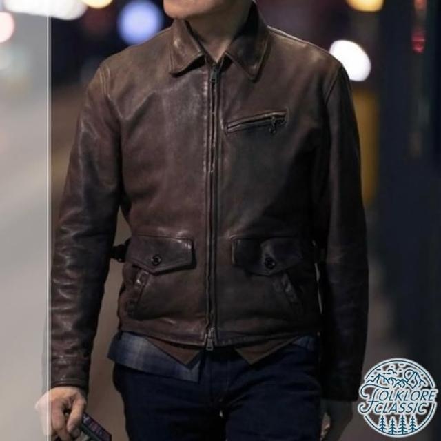 Folklore Classic 雙色 復古翻領雙拉鍊報童植鞣舊化馬皮外套 馬皮皮衣(RL 張學友MV同款)