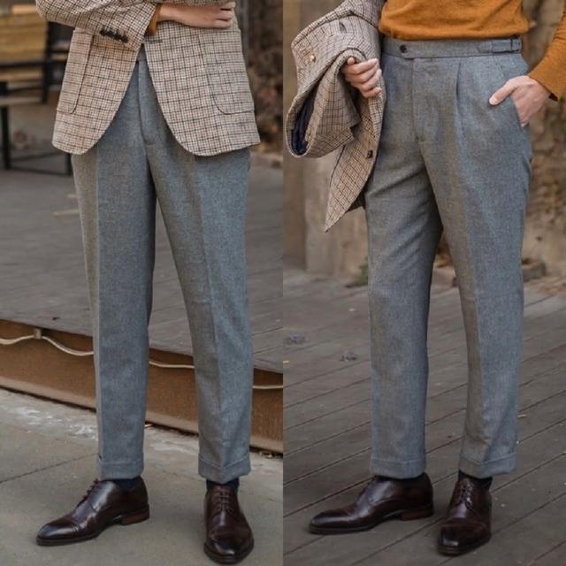 Folklore Classic 三色 義式那不勒斯高腰扣帶雙摺法蘭絨羊毛(西裝褲)