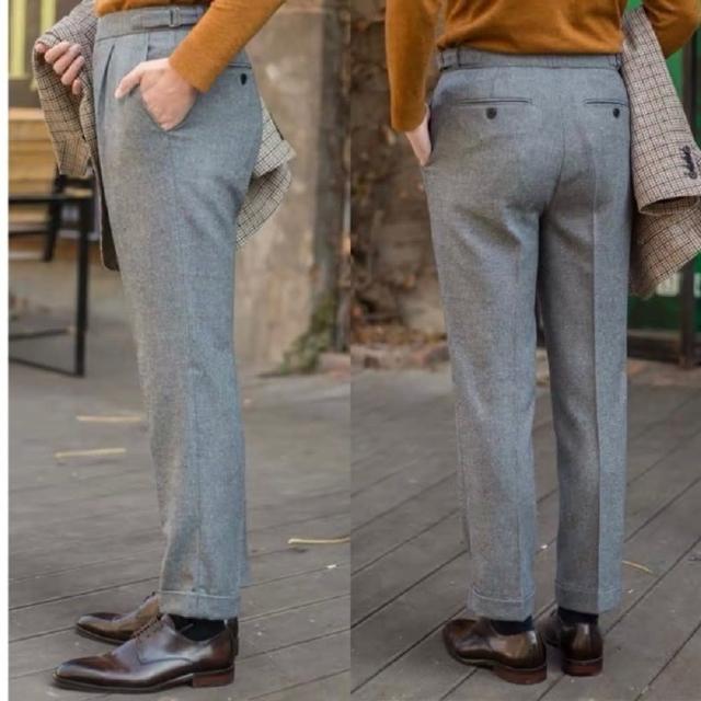 Folklore Classic 三色 義式那不勒斯高腰扣帶雙摺法蘭絨羊毛(西裝褲)