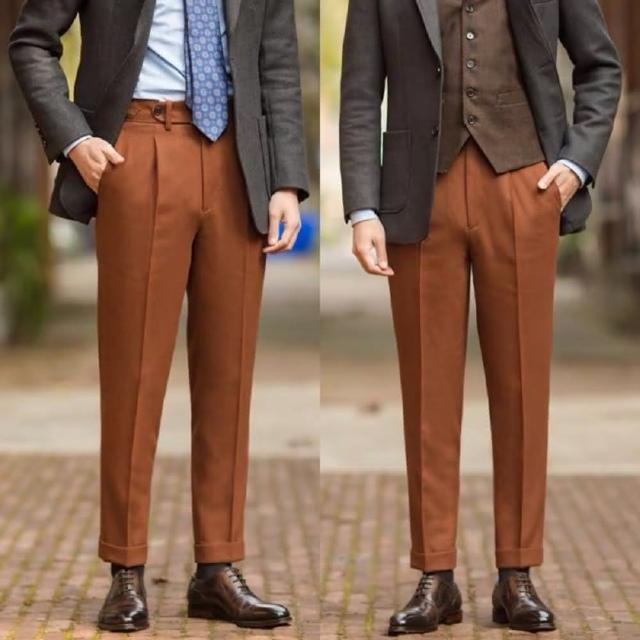 Folklore Classic 三色 義式那不勒斯高腰扣帶雙摺法蘭絨羊毛(西裝褲)