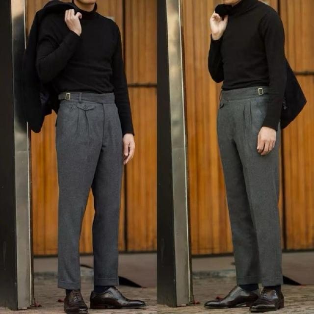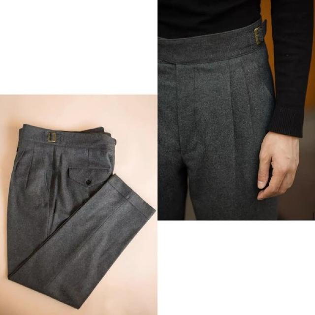 Folklore Classic 三色 復古高腰扣帶雙褶羊毛呢廓爾格Gurkha西裝褲(軍褲)