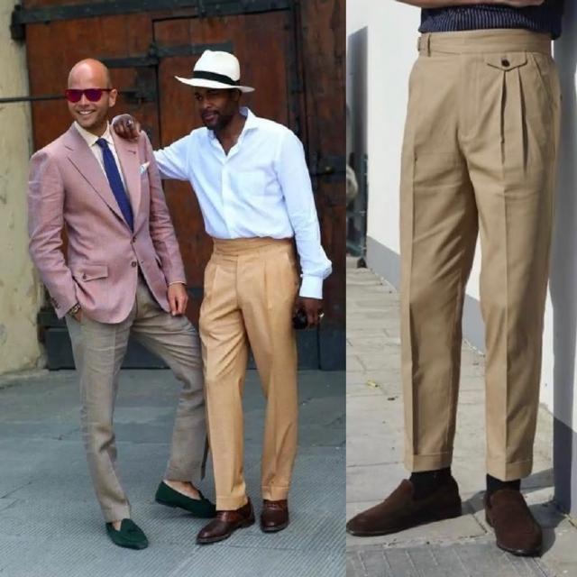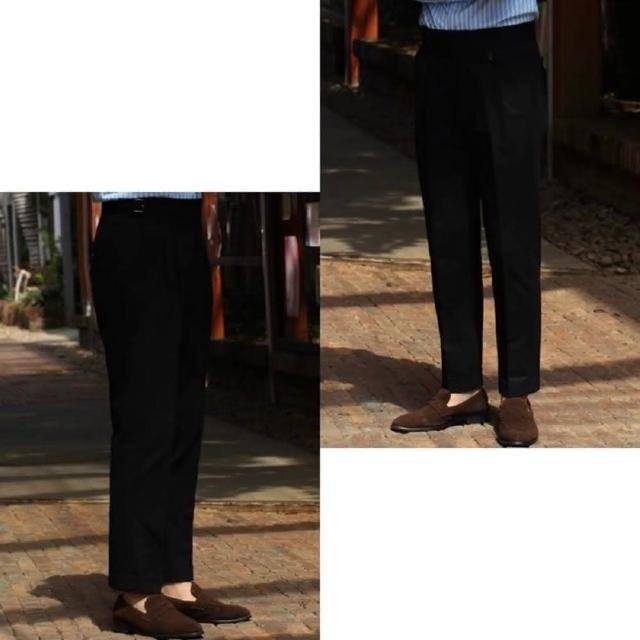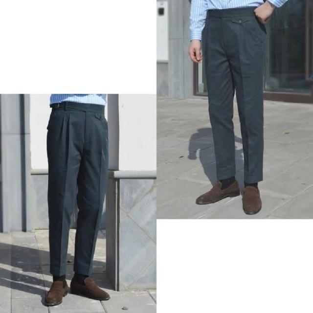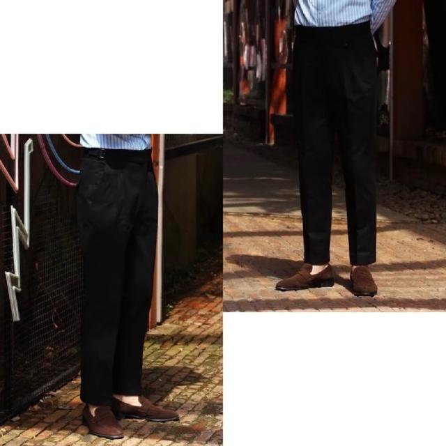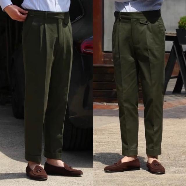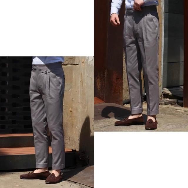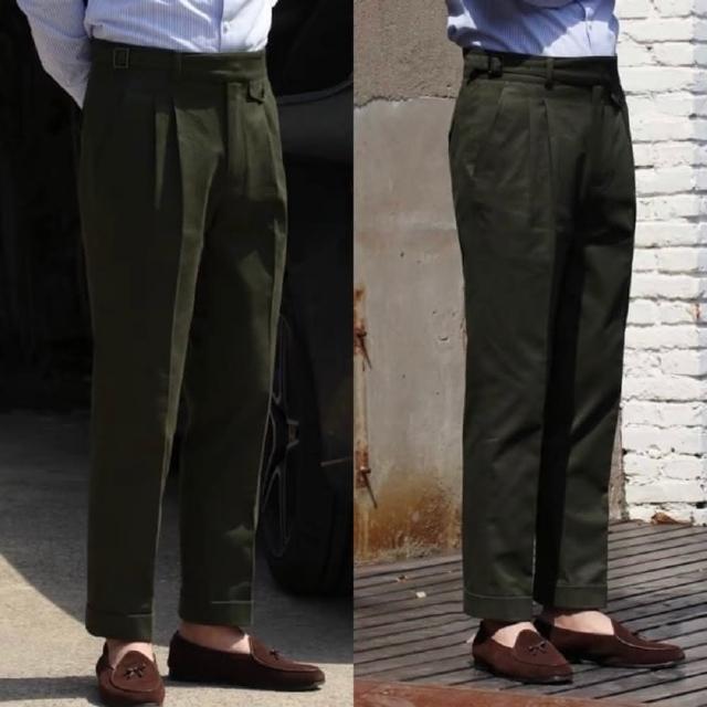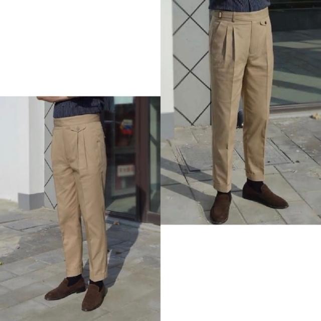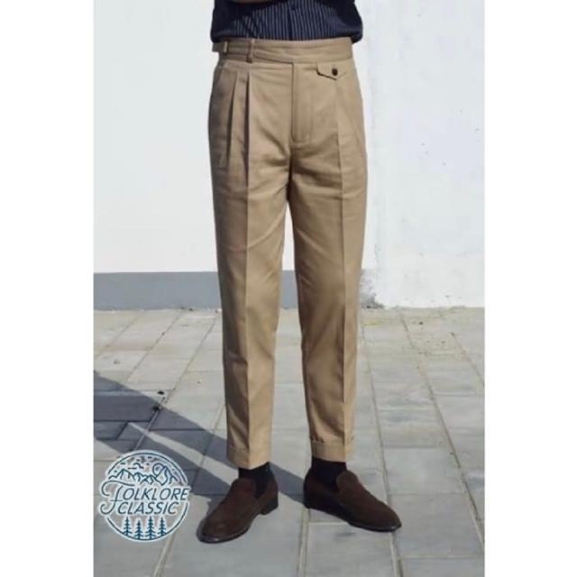 Folklore Classic 義式那不勒斯 純棉高腰扣帶Gurkha修身小直筒雙摺西裝褲(卡其褲 五色)