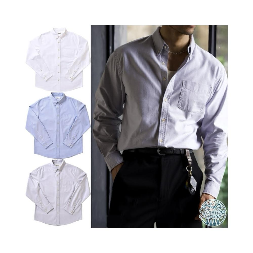 Folklore Classic 三色 復古學院風牛津紡水洗純棉口袋翻領襯衫 工作襯衫 商務襯衫 Oxford