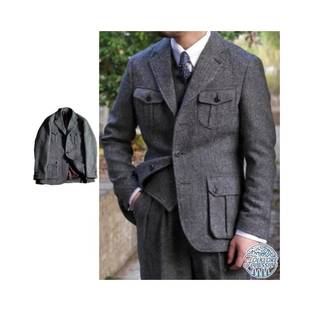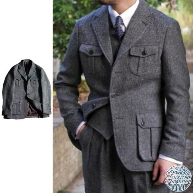 Folklore Classic 英式復古彩點純羊毛粗花呢獵裝 Safari Jacket