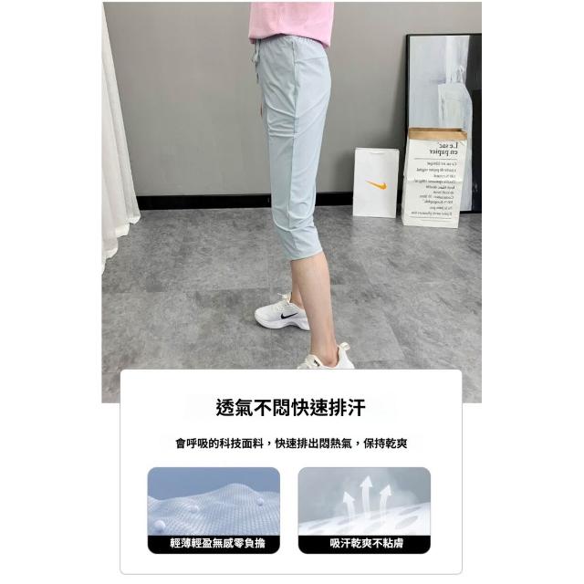 運動褲女款休閒七分褲冰絲涼感褲緊身跑步短褲彈性工作褲大尺碼顯瘦直筒寬褲子夏天薄吸濕排汗登山長褲速乾路跑短褲高爾夫球羽球褲