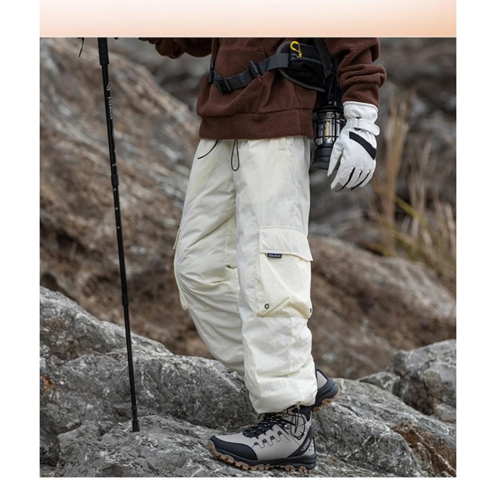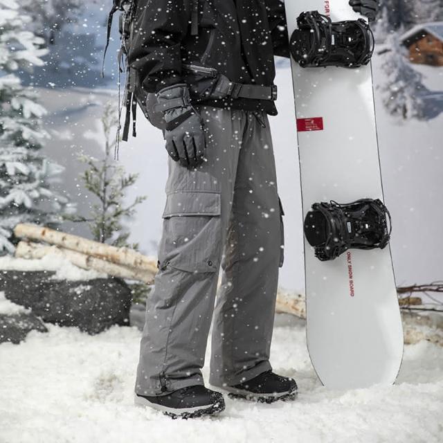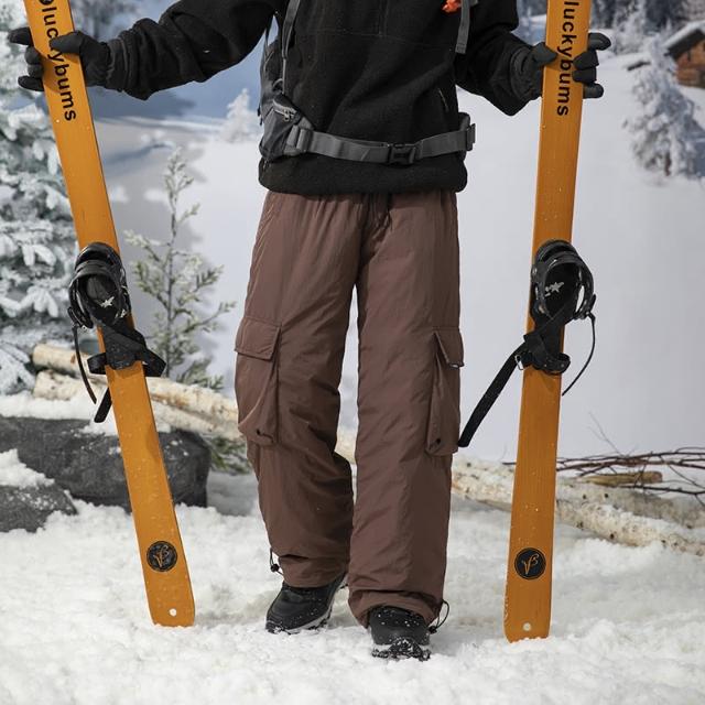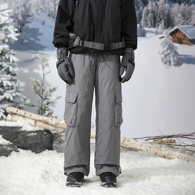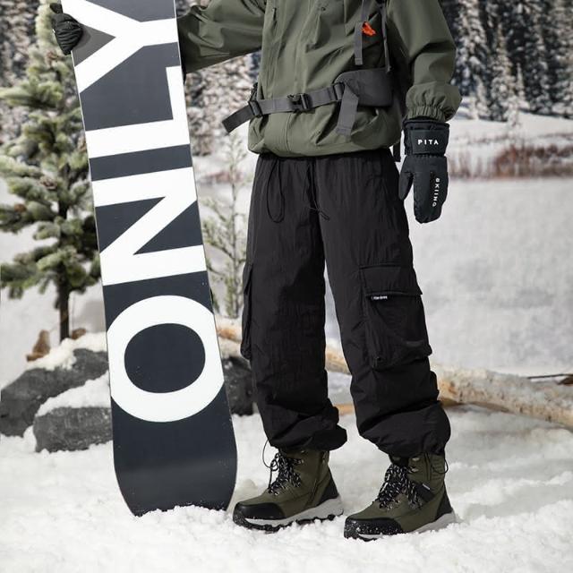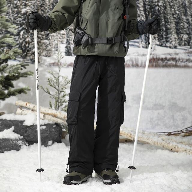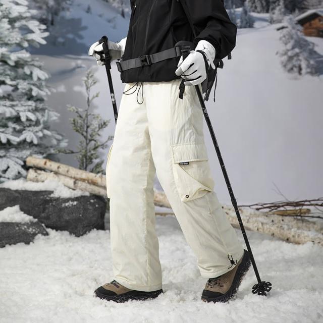 2024冬季 含90白鸭绒 软壳衝鋒褲 加厚加絨保暖長褲 登山抗撕裂褲 滑雪褲 寬鬆直筒雪褲 防風防水防靜電 男女同款