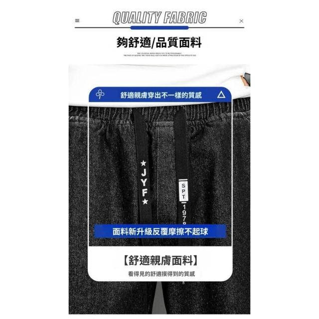 九分牛仔褲男大尺碼彈性寬褲男生春秋季薄款透氣長褲鬆緊束口哈倫休閒褲男款寬鬆耐磨工作褲美式高街垂感顯瘦牛仔長褲鬼洗牛仔褲