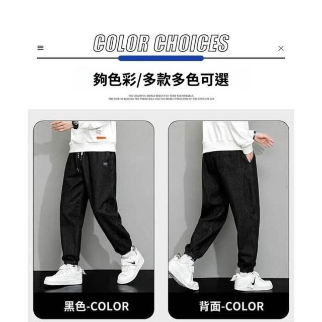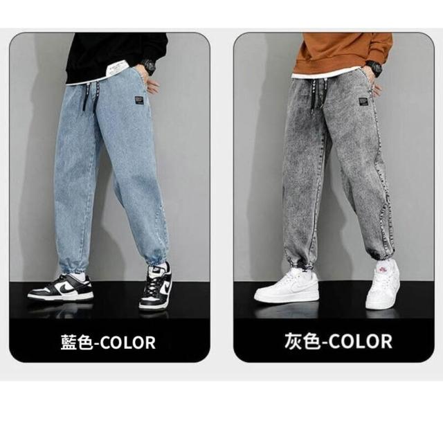 九分牛仔褲男大尺碼彈性寬褲男生春秋季薄款透氣長褲鬆緊束口哈倫休閒褲男款寬鬆耐磨工作褲美式高街垂感顯瘦牛仔長褲鬼洗牛仔褲