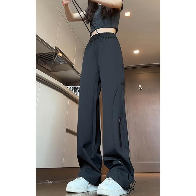 運動長褲男女款直筒寬褲大尺碼休閒褲子女生彎刀褲顯瘦闊腿工裝褲夏天防水防風登山衝鋒褲吸濕排汗冰絲涼感褲鬆緊帶工作褲白色黑色