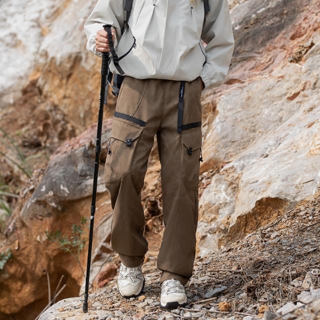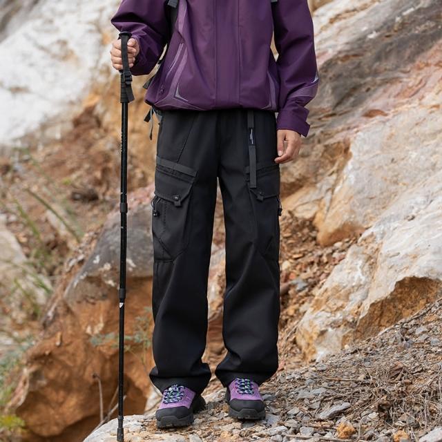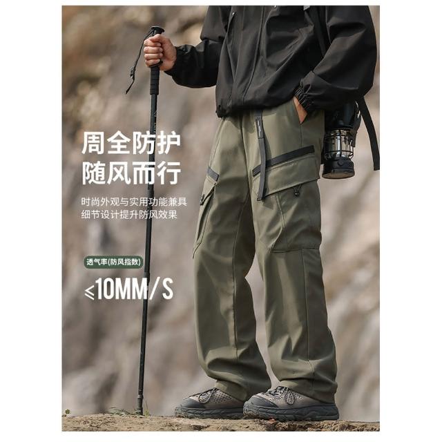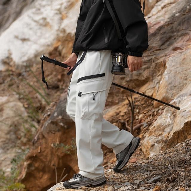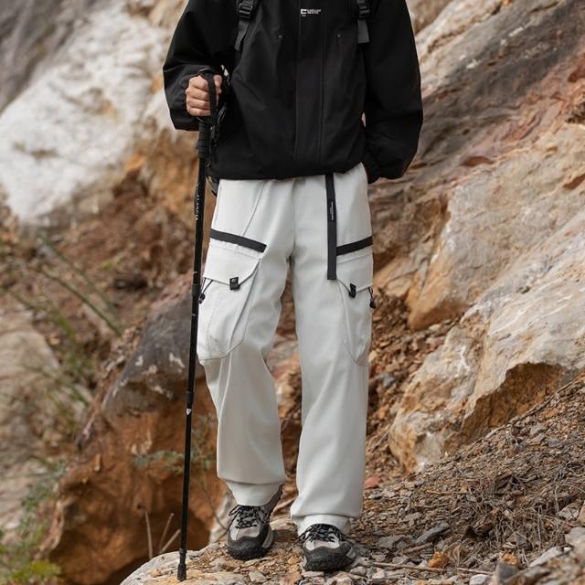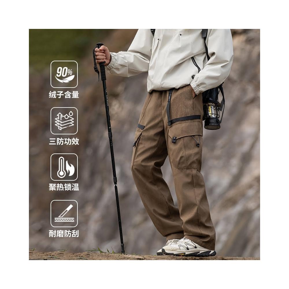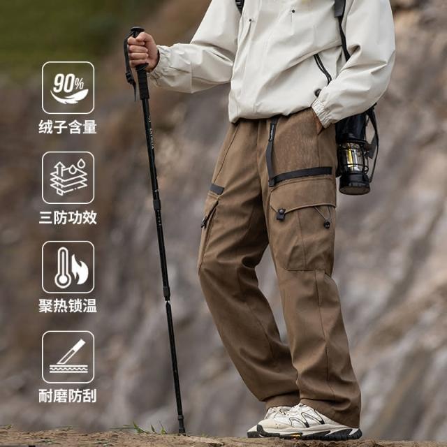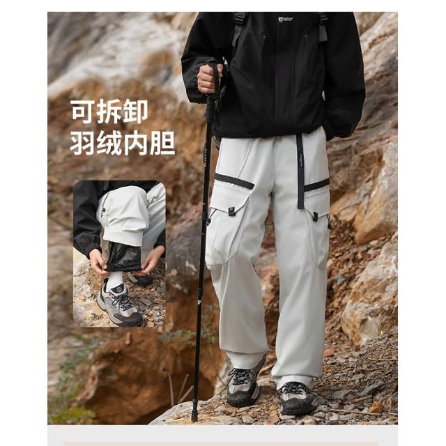 2024秋冬 户外加绒加厚 可拆卸內膽(90白鸭绒)三合一轻量化冲锋褲 多口袋工裝褲 寬鬆直筒休閒褲 雪褲男 防風防水保暖登山褲