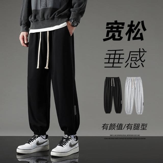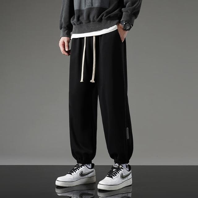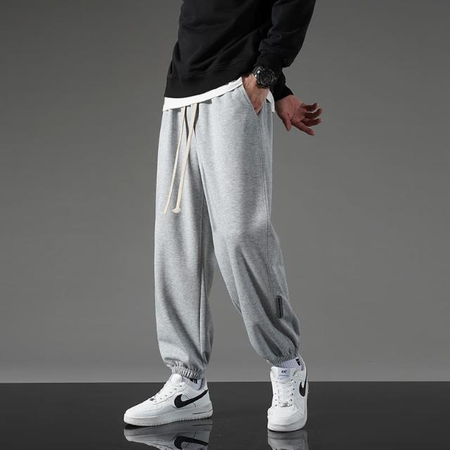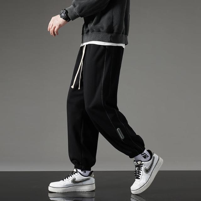 2024秋冬季 棉卫褲男 运动褲 青少年寬鬆百搭休闲长褲 素色休閒束腳褲 機能長褲 運動工裝褲 內刷毛長褲