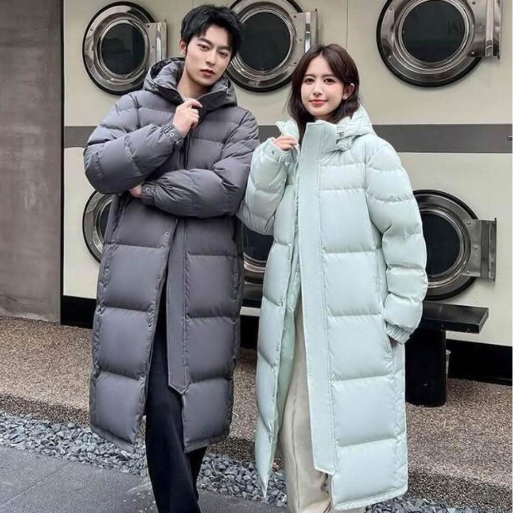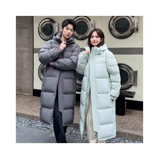 羽絨外套男女大尺碼長版白鴨絨羽絨服冬天防風保暖外套青少年加厚麵包服大學生連帽羽絨衣防寒鋪棉大衣外套情侶禦寒棉衣