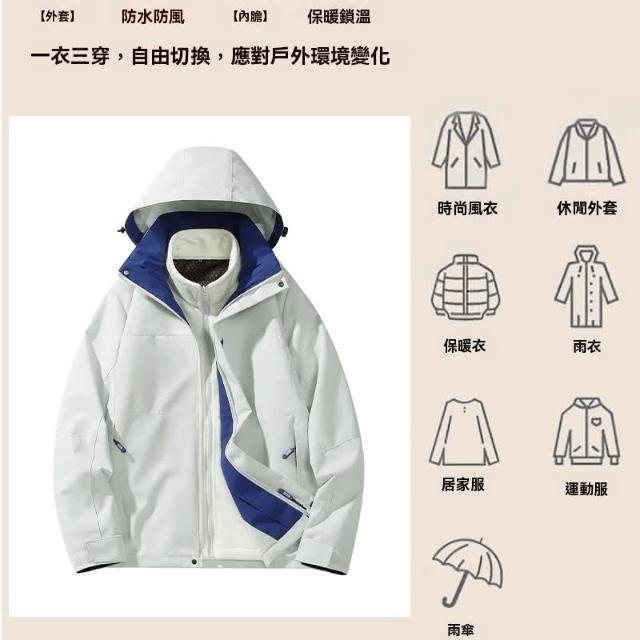 2025冬 三合一衝鋒衣 軟殼兩件套 户外登山服情侶款 石墨烯自发热保暖外套男 防風防水衝鋒衣女 滑雪服 禦寒加厚衝鋒衣