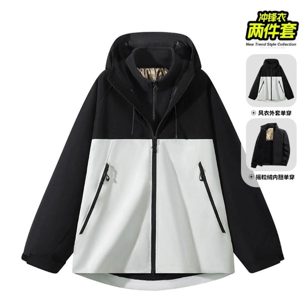 三合一衝鋒外套男女款防風防水保暖外套大尺碼戶外機能登山外套情侶兩件套軟殼加絨衝鋒衣短版防寒羽絨外套防潑水休閒運動夾克外套