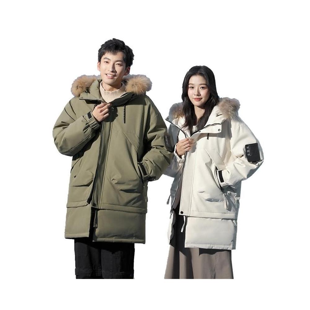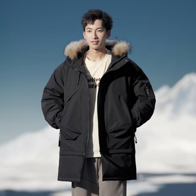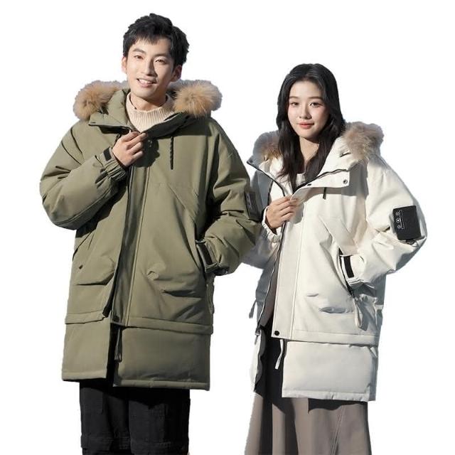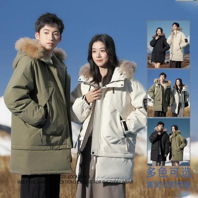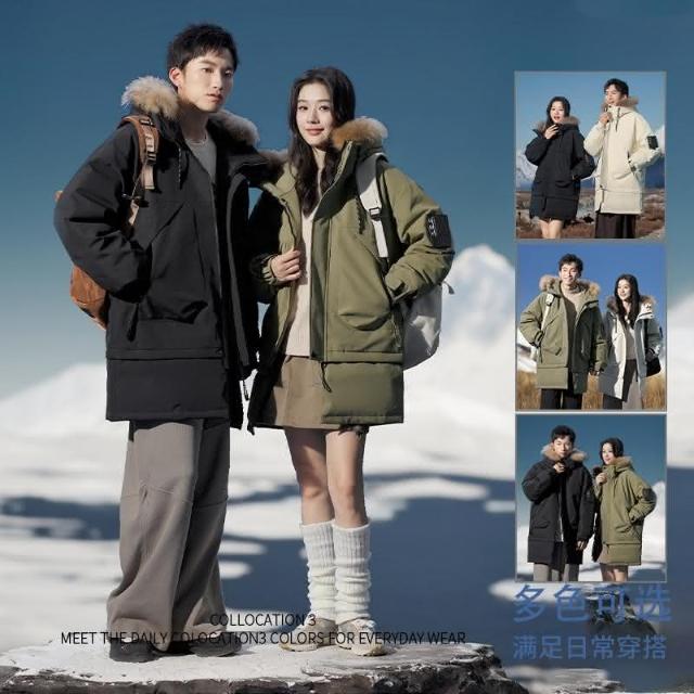 台灣發出 中長款羽絨外套 純色羽絨服 羽絨衣 連帽羽絨外套 男女同款 冬季保暖外套 防風外套 男羽絨外套 大毛領 冬季外套 防寒外套