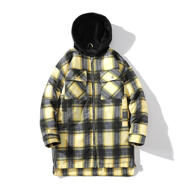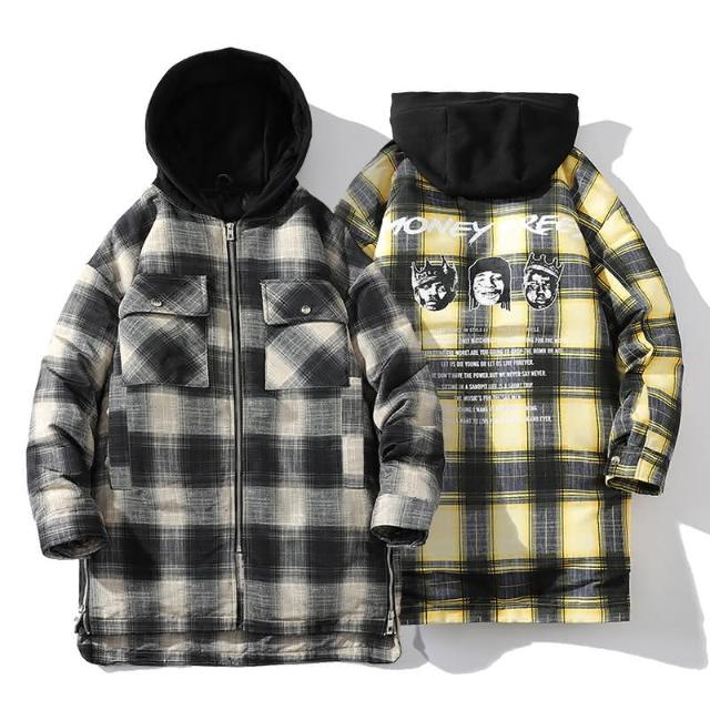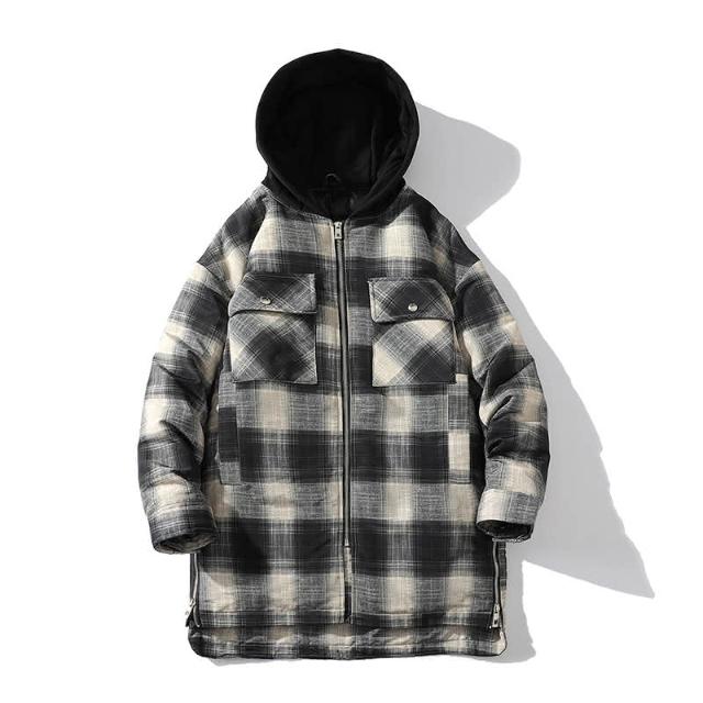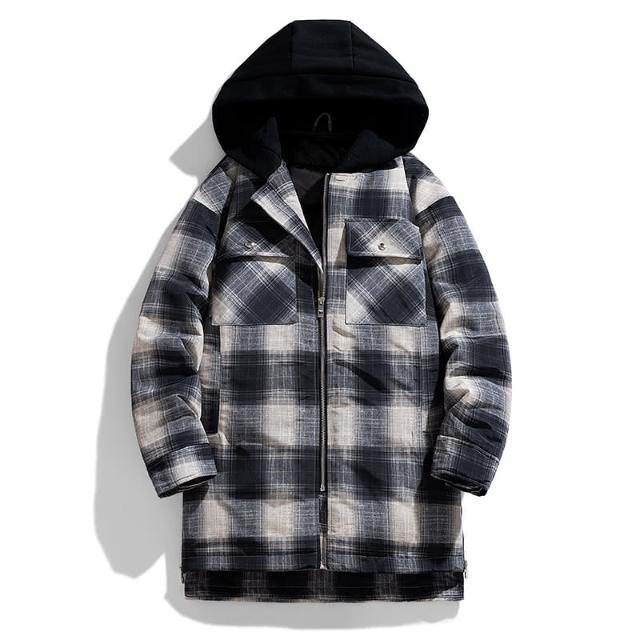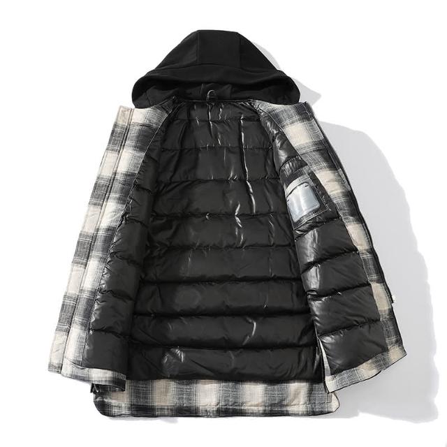 台灣發出 連帽格子羽絨外套男 加厚羽絨服 中長款羽絨服 男女同款 冬季保暖外套 防風外套 保暖羽絨服 加厚外套 冬季外套 防寒外套
