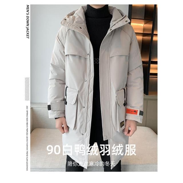 台灣發出 連帽羽絨服 工裝外套 中長款 純色羽絨服 男生外套 羽絨外套 休閒羽絨服 羽絨服 防寒外套 保暖外套 冬季保暖外套 防風外套