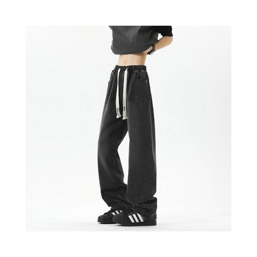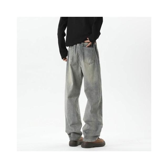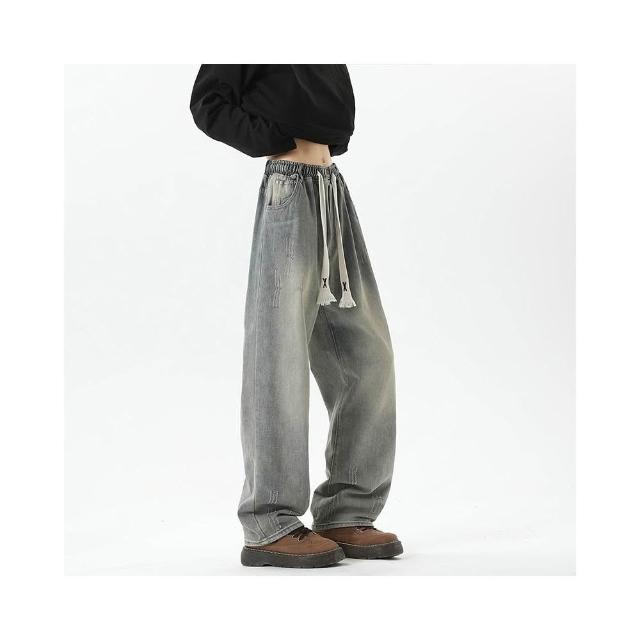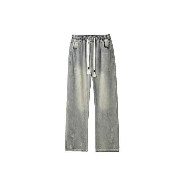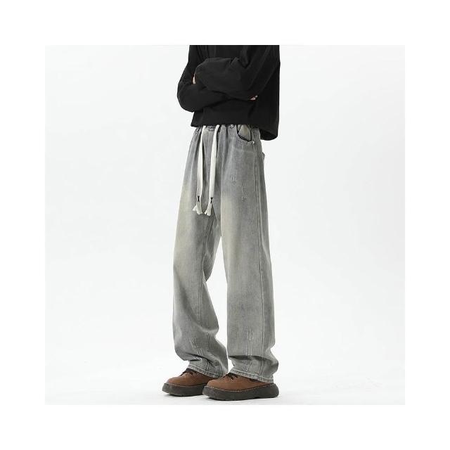 直筒牛仔褲男2025新款大尺碼男生夏天薄款透氣長褲彎刀闊腿休閒褲男款寬鬆耐磨工作褲彈性寬褲美式微喇垂感褲子涼感牛仔長褲