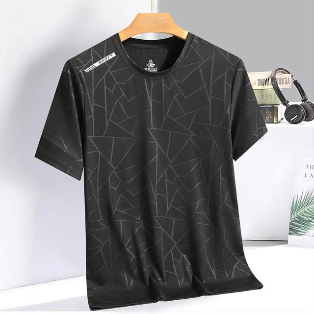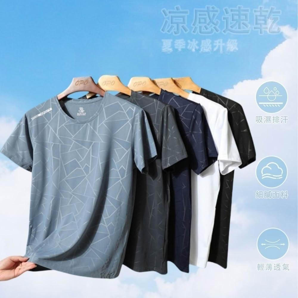 t恤男短袖夏天輕薄透氣涼感衣男寬鬆圓領休閒男上衣彈力冰絲冰涼衣服跑步健身運動短袖中年爸爸上衣夏季戶外吸濕排汗衣高爾夫球衫