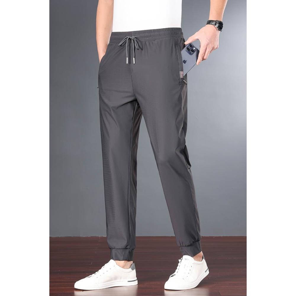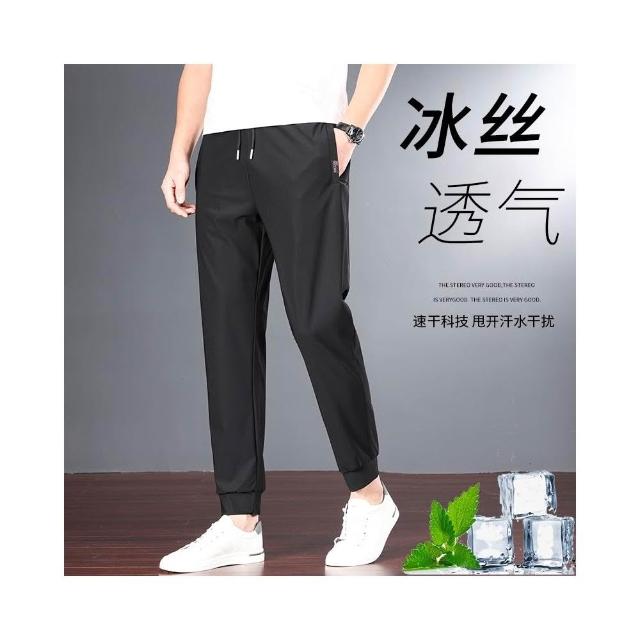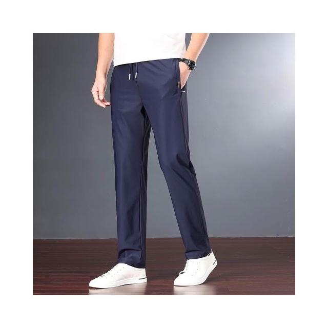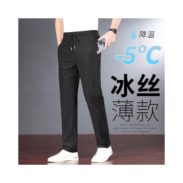 冰絲長褲 薄款男士運動褲 涼感直筒褲 大碼商務闊腿長褲 側邊拉鏈口袋褲 速乾褲 透氣彈力長褲 中年爸爸長褲