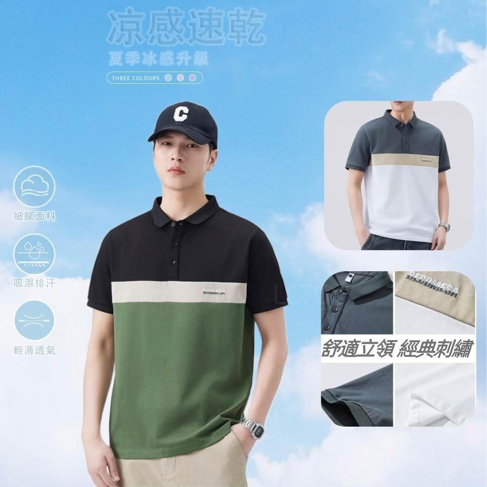 短袖polo衫男大尺碼運動吸濕排汗冰絲涼感衣夏天薄款上衣爸爸高級感年輕男裝t恤速乾透氣商務修身正肩短袖男款高爾夫球羽球衣