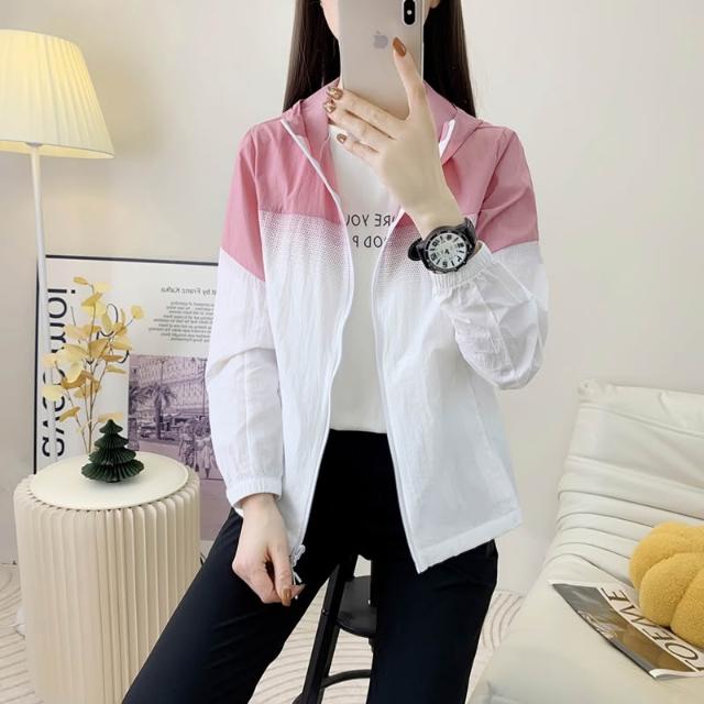 防曬外套女款抗uv防曬外套夏天速乾透氣休閒運動外套吸濕排汗冰絲涼感外套uv100防曬罩衫大尺碼女生輕薄跑步登山連帽薄外套 M-4XL健身長袖上衣外套短板冰涼衣服女裝防風防水遮陽外套冷氣房外套