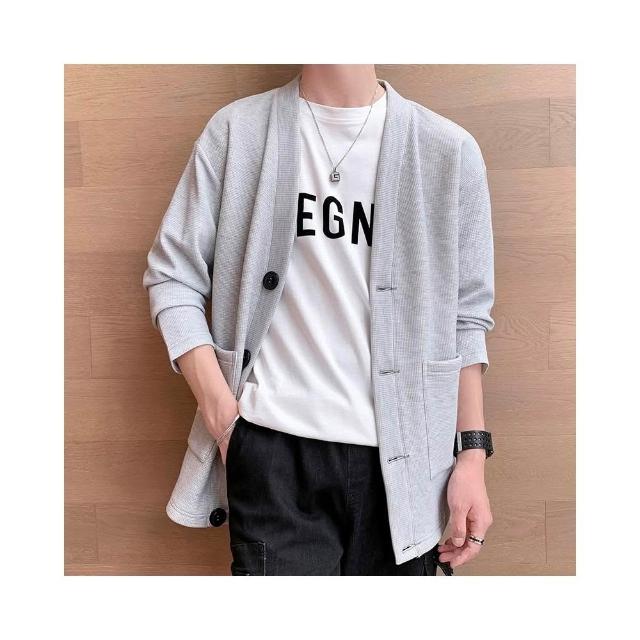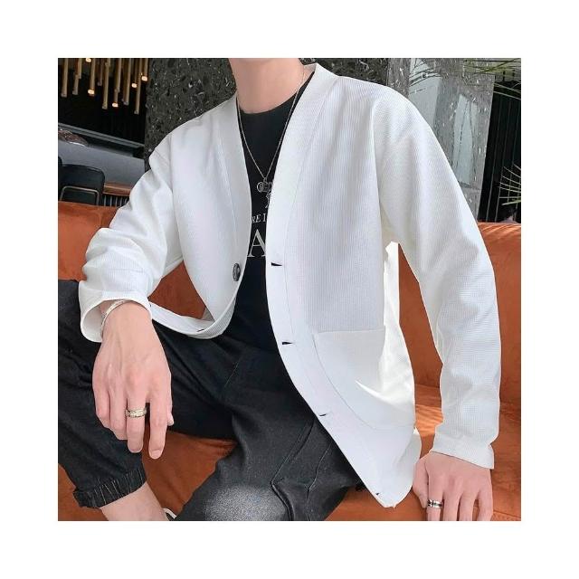 華夫格西裝薄外套男涼感西裝外套休閒透氣外套冰絲西裝男排扣長袖開衫夏季涼感外套男生外套開衫上衣休閒百搭外套