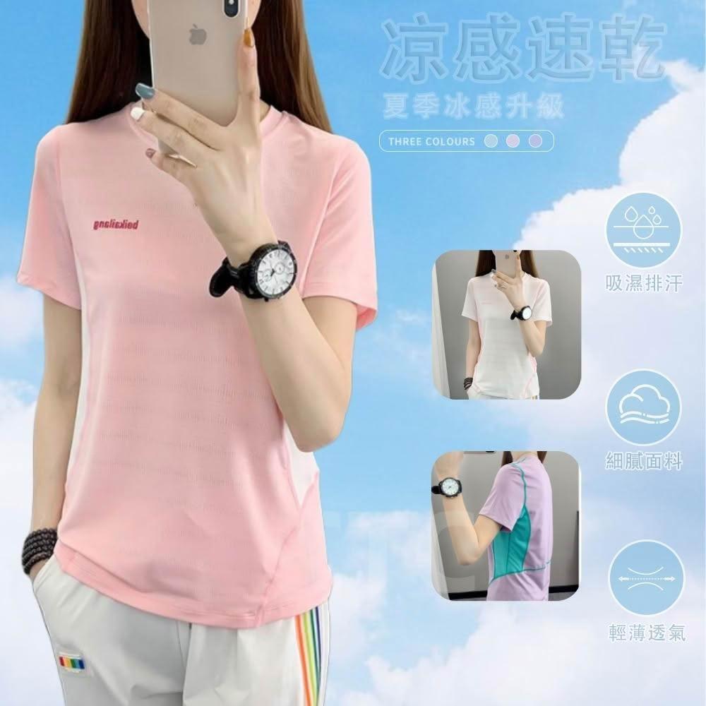 涼感衣女冰絲衣彈力速乾t恤運動內衣吸濕排汗衣女運動上衣瑜伽服吸溼工作T恤透氣彈性衣冰涼衣服夏天短t網眼透氣短袖