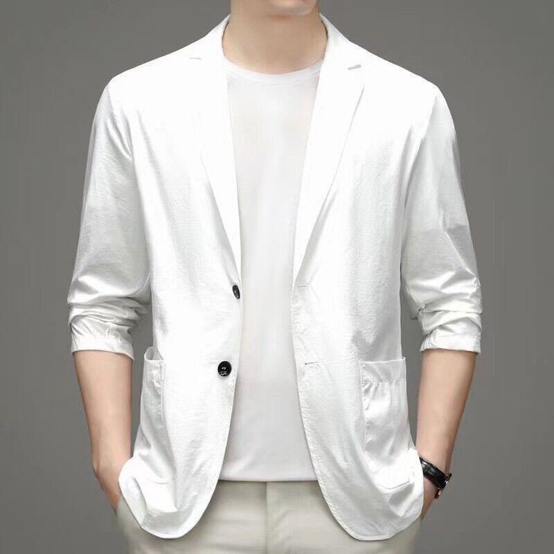 西裝外套男款抗uv防曬外套夏天休閒運動速乾透氣薄外套冰絲涼感西裝外套男士商務夾克休閒修身短板西服男生吸濕排汗外套長袖上衣